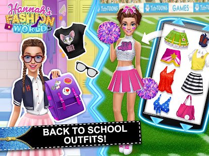 Mặc cho Hannah trong trang phục nữ sinh trung học sành điệu và thoải mái! Chọn trong số những chiếc áo và váy dễ thương, giày thể thao thoải mái và giày cao gót sành điệu, túi nữ tính đơn giản và ba lô vui nhộn cho trường trung học! Tìm một kiểu tóc hoàn hảo cho ngày lễ Hannah ở trường!