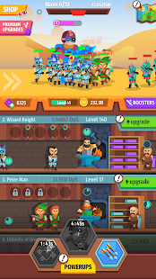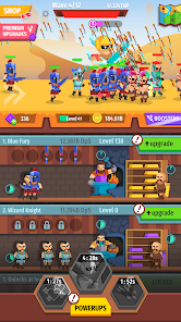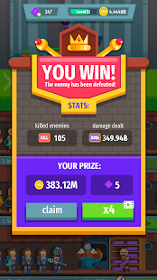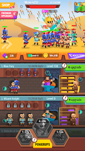 Nhấn để nâng cấp lò rèn của bạn và sản xuất các thiết bị ma thuật tốt hơn. Quân đội của bạn sẽ bắt đầu chiến thắng ngay cả khi bạn nhàn rỗi và bắt đầu đánh bại kẻ thù và thu thập chiến lợi phẩm. Với chiến lợi phẩm này, bạn có thể chế tạo kiếm, cung và rìu sử thi để mở khóa những đội quân tốt hơn và chiến thắng trong cuộc chiến với các anh hùng AFK.