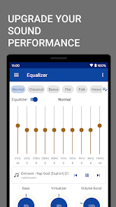 EQ +: Equalizer & Bass Booster & Volume EQ cho phép bạn điều chỉnh các mức hiệu ứng âm thanh để bạn tận dụng tối đa âm nhạc hoặc âm thanh phát ra từ loa và tai nghe của điện thoại.