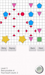 The bigger the shape, the more explosions are needed to get rid of it. Red dots explode into four pieces which move into four directions on the board to hit other shapes.