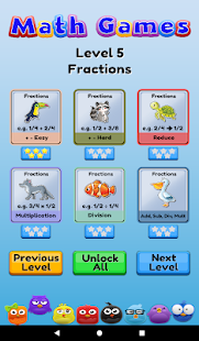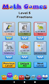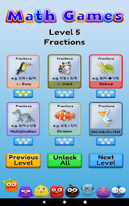 Trò chơi toán học đầy màu sắc này rất phù hợp cho học sinh ở mọi lứa tuổi, từ trẻ em đến người lớn. Mặc dù các chủ đề toán học là những chủ đề được nghiên cứu bởi học sinh tiểu học, tiểu học và trung học cơ sở (mẫu giáo đến lớp 8), ứng dụng này cũng cung cấp bài đánh giá và thực hành tuyệt vời cho học sinh lớn hơn. Trò chơi Toán học cũng hoàn hảo để giới thiệu cho con bạn những khái niệm toán học mới. Với một chút hướng dẫn, con bạn sẽ nhanh chóng tiếp thu và chinh phục từng thử thách toán học và thực sự thích học.