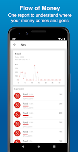 Know how you spend - One report to give a clear view on your spending patterns. Understand where your money comes and goes with easy-to-read graphs. Expense & income by time and category.