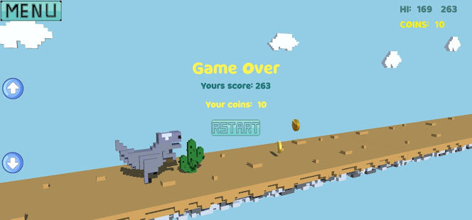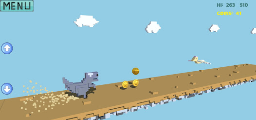 The new game that we have for you is a 3D type of game, a runing game in which the main character is a T-Rex. Tyrannosaurus rex was one of the largest land carnivores of all time and we have the honour to offer you game in which you have him as main character and were you will control all of his moves. In this running type of game you have to control the T-Rex and avoid all the obstacles that get into your way in order to go further in the game. Be carefull not ot his any obstacle, because at the thirt obstacle you hit, the game is over.
