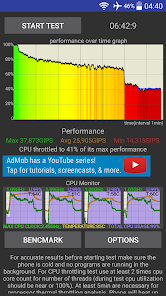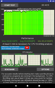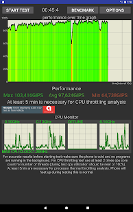 hiệu suất này sẽ hiển thị ứng dụng trên một đồ thị và các biện pháp tối đa, tối thiểu và hiệu suất trung bình. Sau khi ứng dụng thử nghiệm sẽ phân tích dữ liệu để tìm nếu và bao nhiêu CPU throttling xảy ra.