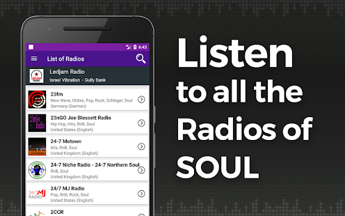 Tìm kiếm một ứng dụng với tất cả các radio của Soul Music? Đừng phí thời gian của bạn !! Bạn đã tìm thấy ứng dụng Radio bạn đang tìm kiếm, nghe trực tuyến các đài phát thanh tốt nhất của Soul, một cách dễ dàng và miễn phí