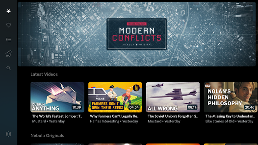Nebula là một dịch vụ phát trực tuyến độc lập do Người sáng tạo xây dựng. Nó có các video, podcast và lớp học chu đáo được điều chỉnh cho phù hợp với khán giả của chúng tôi - không có quảng cáo. Khi sử dụng ứng dụng Nebula, bạn sẽ có quyền truy cập vào:
