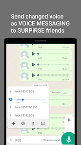 Giả vờ trở thành nhân vật yêu thích của bạn và gửi giọng nói đã thay đổi của bạn thông qua ứng dụng trò chuyện yêu thích (WhatsApp, Telegram, LINE, v.v.) để tạo bất ngờ cho bạn bè của bạn.