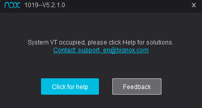 Nếu trong lúc sử dụng NoxPlayer mà hiển thị thông báo “Error: 1019 – System VT occupied by another progress” thì các bạn hãy làm theo các bước như sau: